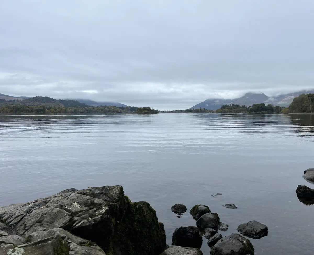 The road follows the western shore of Bassenthwaite Lake for about 5 miles. There is a short stretch of dual carriageway (this used to be the old road and has a number of bends).